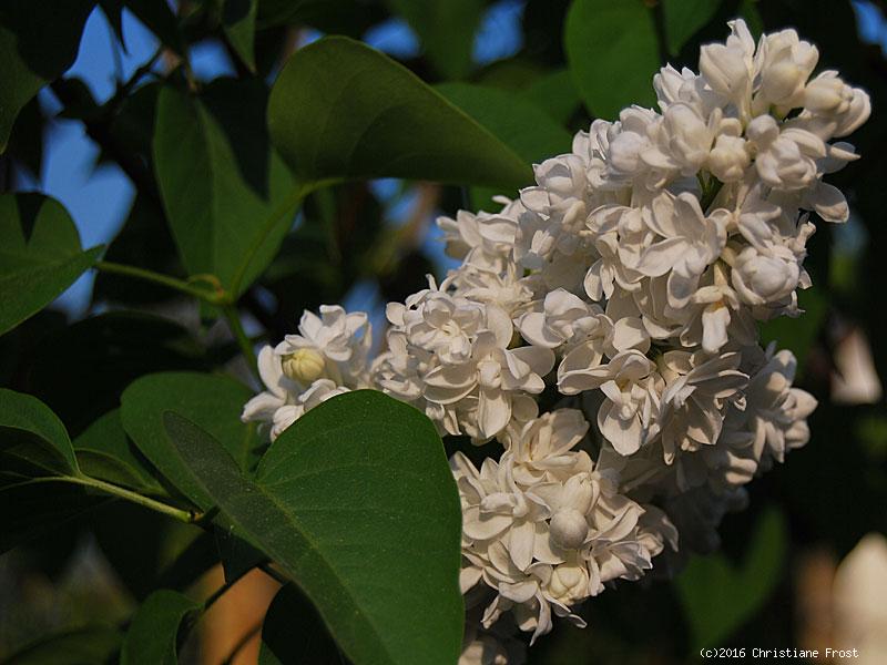 Die Blüte ist stark duftend in endständigen Rispen, reinweiss, gefüllt. Blütezeit ist der Mai.