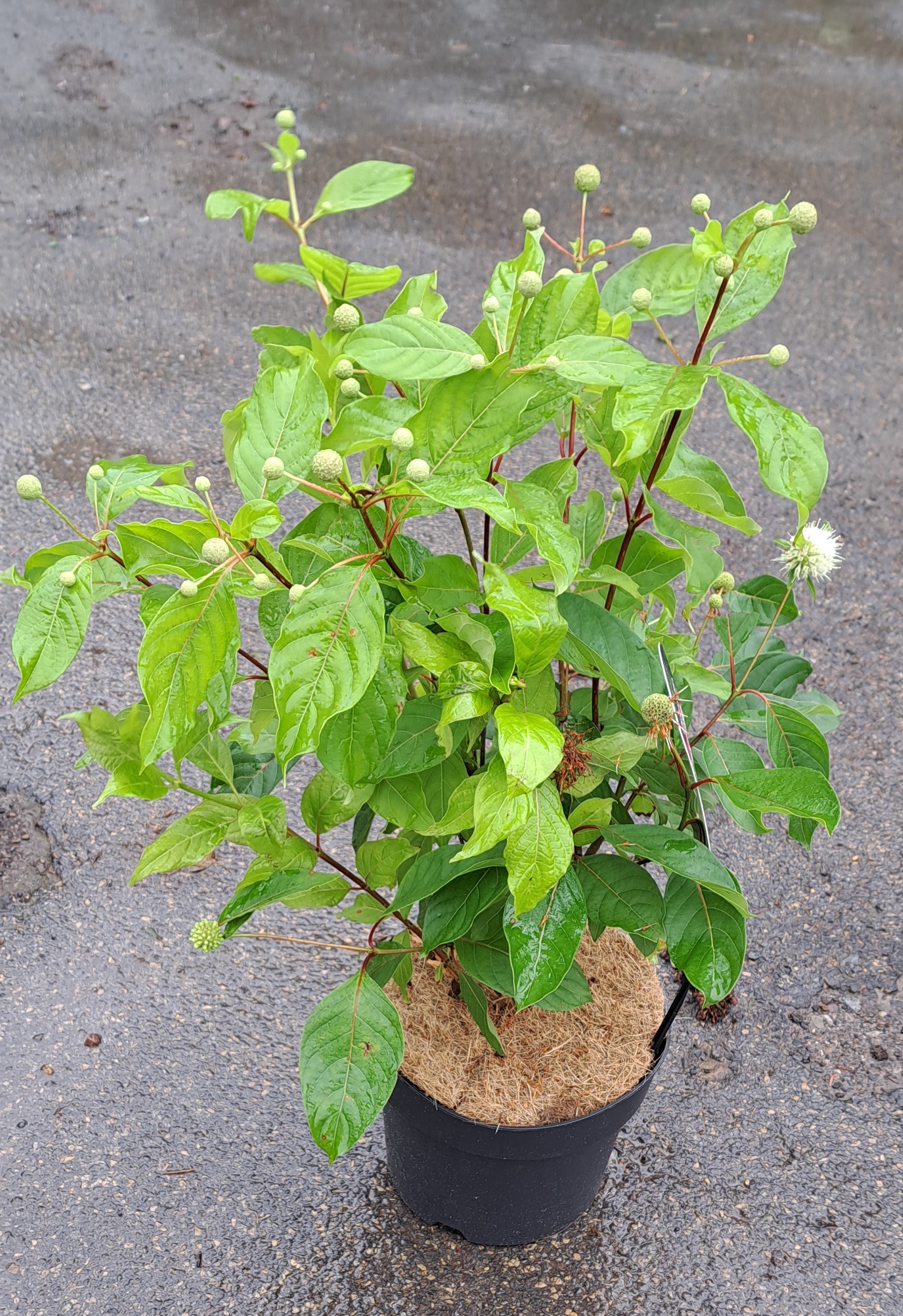 Dieser eher kleine Strauch besticht durch seine außergewöhnlichen kugeligen, weißen Blüten. Diese erscheinen von Juli - Oktober äußerst zahlreich