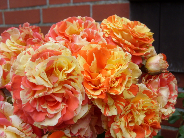 Blüte : Leuchtend orange mit goldgelben Streifen, groß, gefüllt, in kleinen Dolden