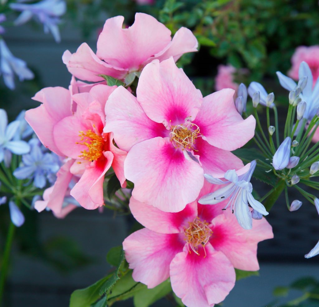 Blüte : Rosa mit pinken Auge, einfach, offen, mittelgroß, regenfest, Insektenweide