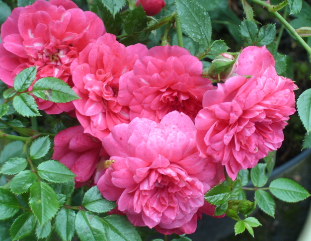 Blüte : Kräftig rosa, klein, gut gefüllt, in Dolden