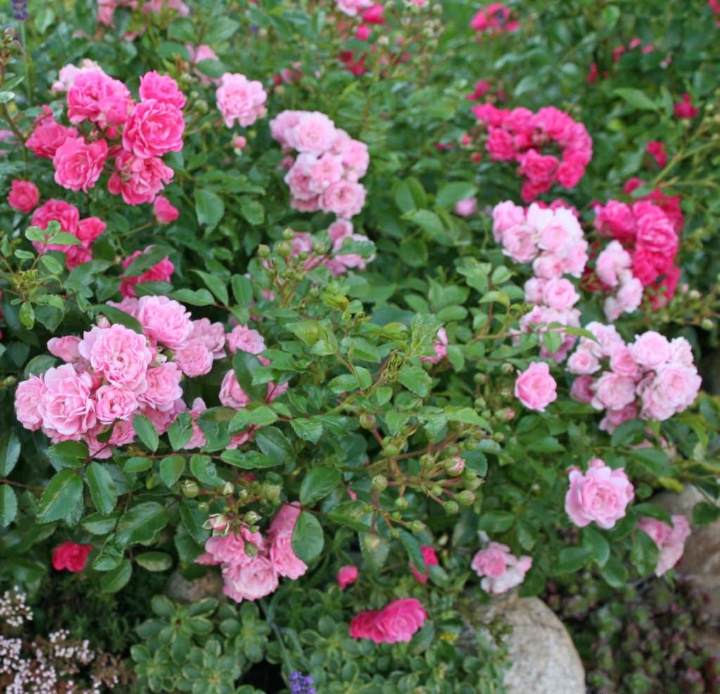 Blüte : Rosa, klein, gefüllt, in Dolden