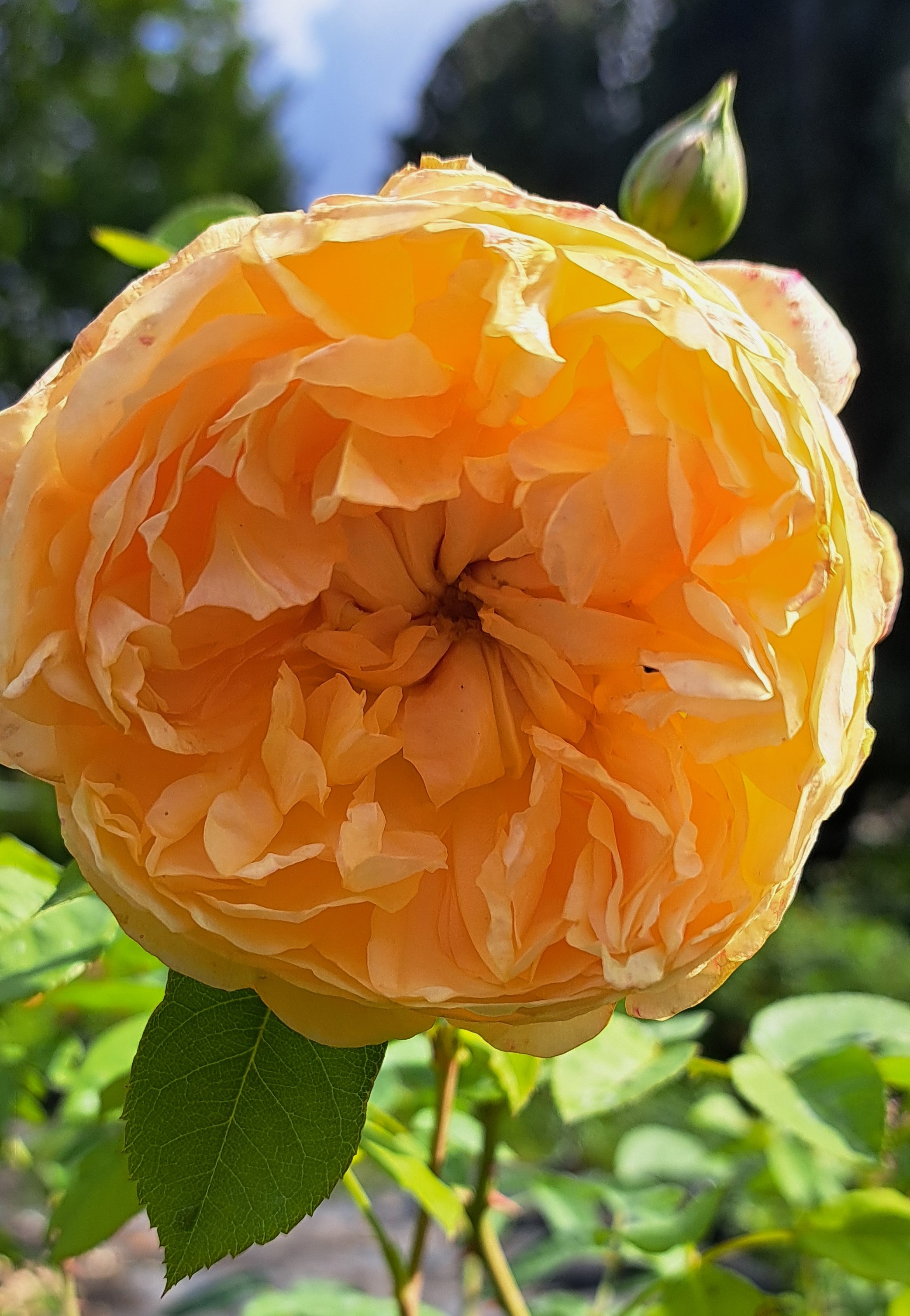 Blüte : Orange-gelb, im Blühverlauf aufhellend, groß, dicht gefüllt