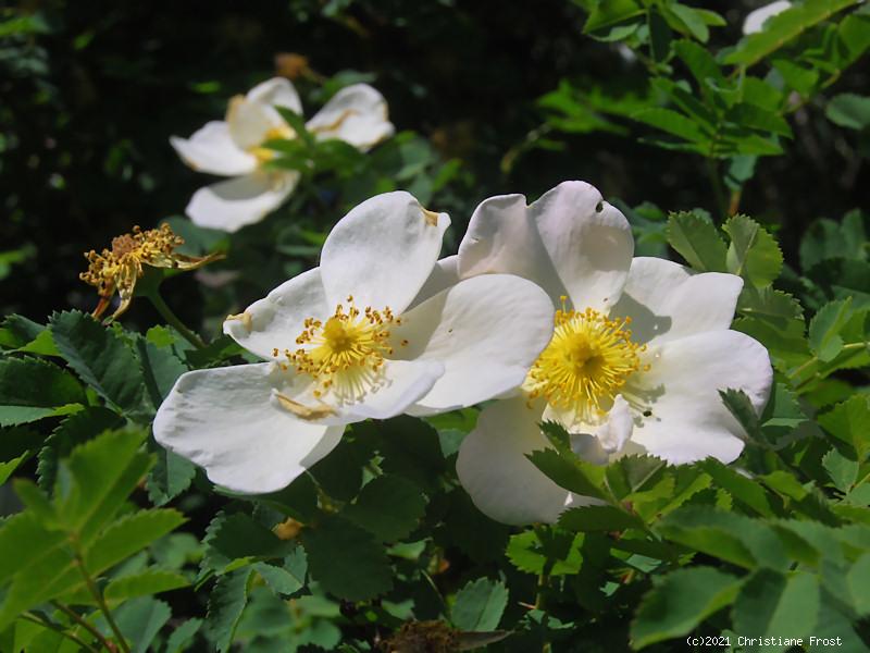 Blüte : weiß bis hellgelb, einfach, offen, gelbe Staubgefäße, Mai - Juni, reichblühend