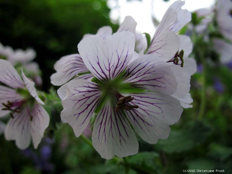 Blüte : weiß mit purpur-blauer Aderung