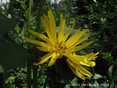 Blüte: gelb, wie kleine Sonnenblumen, auf langen, vierkantigen Stielen