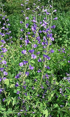 Blüte: lila-blaue Blütenrispen, die bis 40 cm lang werden, Lupinen ähnlich