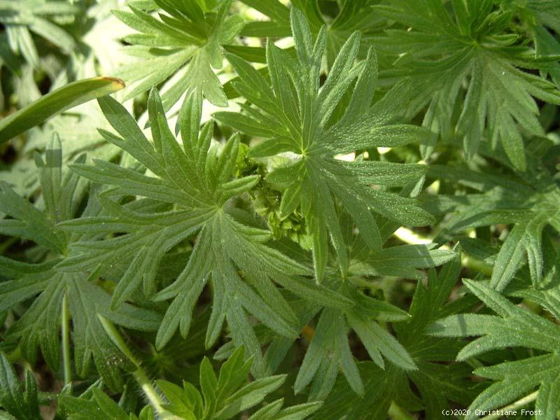 Blatt: dunkelgrün, tief eingeschnitten